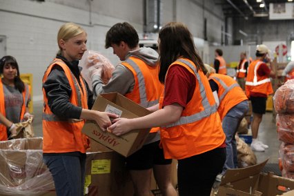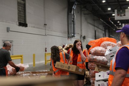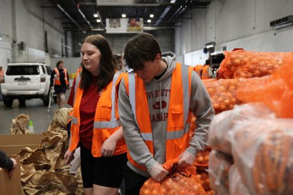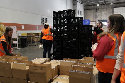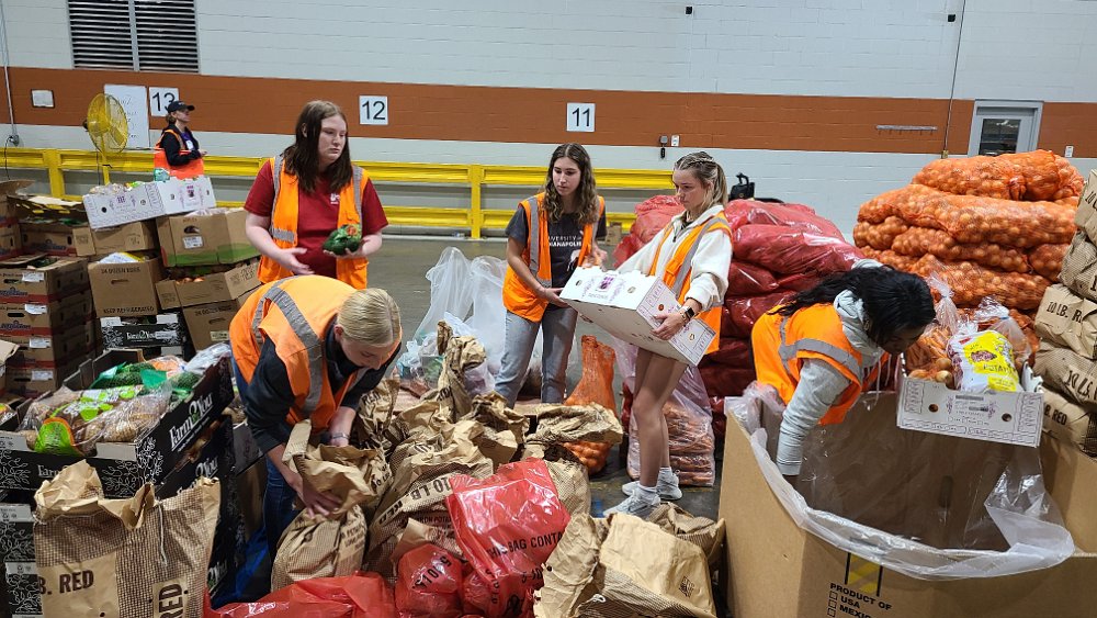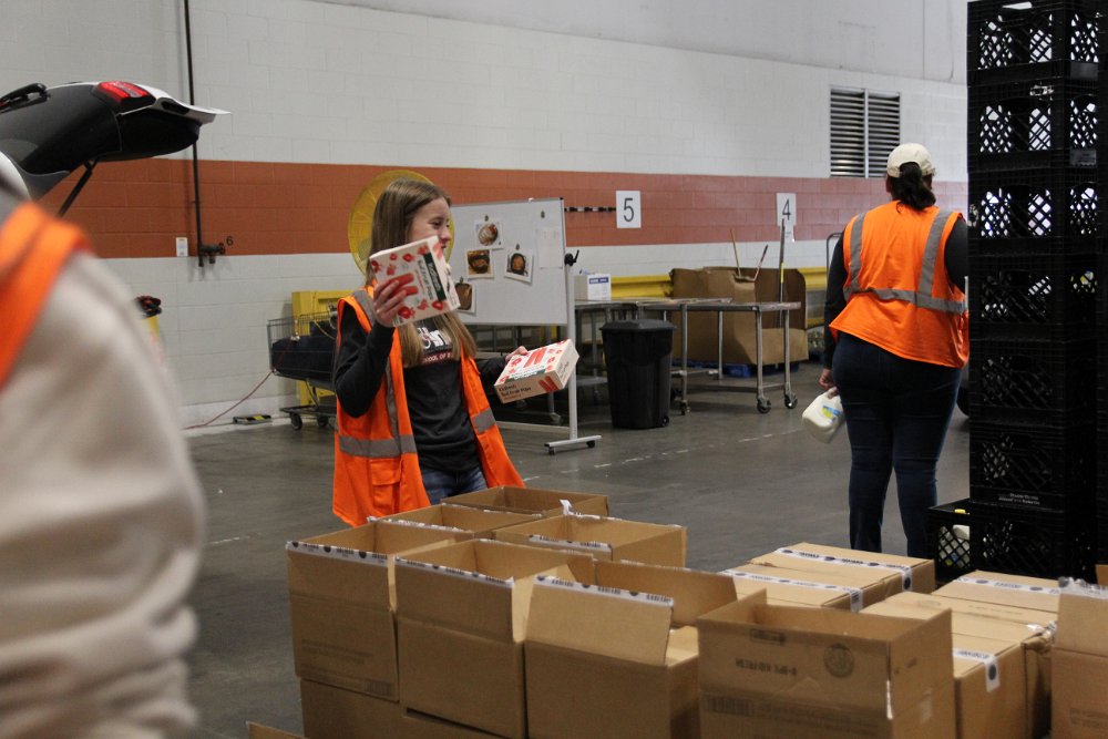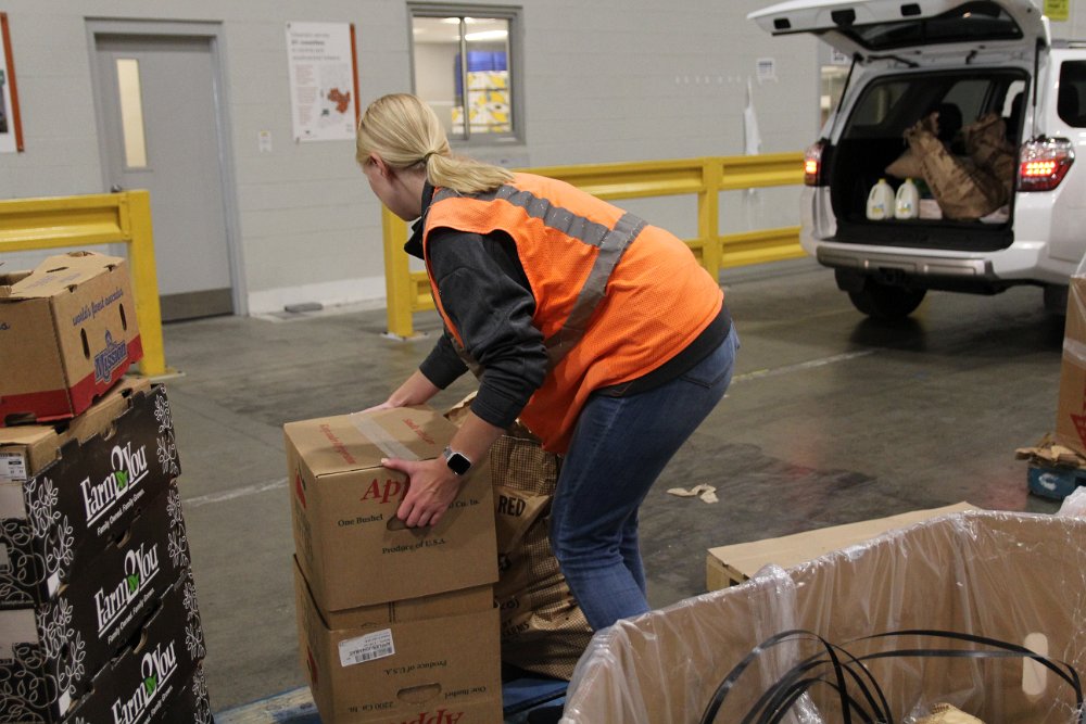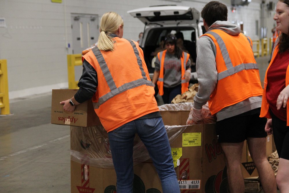 The SBLA group goes to Gleaners Food Bank in Indianapolis to volunteer their time to give back to the community. This year the group was able to help with the Drive-thru where they fed around 1,321 households with dairy, frozen food, produce, and more. The group either wrote numbers on the car of how many households, loaded the cars with the food, was flaggers to tell the cars when to stop and go, or were baggers.